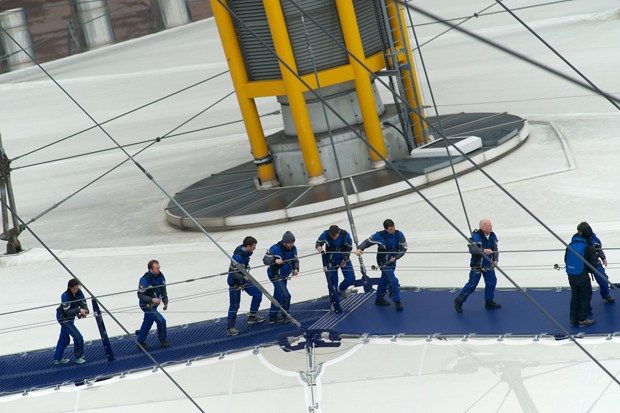 Ši pramoga suteikia šansą visiems norintiems užsikabaroti ant pačios O2 arenos viršūnės. Kelionę prižiūri ir dalyviams kelią rodo profesionalūs ekspeditoriai. Specialiais kostiumais aprengti kopinėtojai pririšami prie tvirto lyno ir palydimi į 53 metrų aukštį. Nuo arenos stogo atsiveria nuostabus Thames upės užtvankos, Shard pastato, Olimpinio miestelio bei Canary Wharf vaizdas.