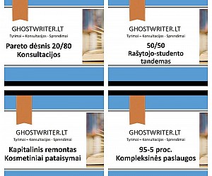 - Ghostwriter.lt buvo ir išlieka orientuota į originalių problemų sprendimų paiešką, suteikiant profesionalią pagalbą studentams pagal poreikį, tuo pačiu metu likviduojant mokymo metu sistemos paliktas spragas.