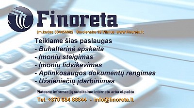 UAB Finoreta – teikia kokybiškas UAB, MB, IĮ, buhalterinės apskaitos paslaugas nuo pirminių dokumentų iki pilnos metinės atskaitomybės.