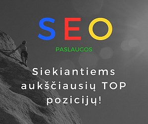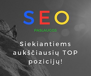 AKCIJA! Iki Naujųjų metų užsisakę pilną pirminį SEO projektą Jūsų svetainei, po jo įgyvendinimo suteiksime nemokamą trijų mėnesių trukmės SEO priežiūrą! |