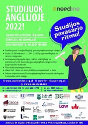 Dar galite suspėti ir pateikti dokumentus studijoms Anglijos universitetuose ir koledžuose pavasario semestrui. IKI DOKUMENTŲ PATEIKIMO PABAIGOS LIKO visai nedaug TIK 2 SAVAITES.