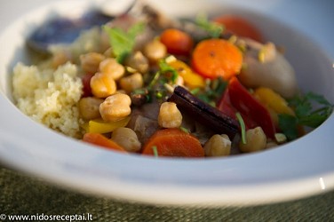 Iki šiol visi mano gaminti tagine – Maroko troškiniai – buvo tirštos, raudonos spalvos, su daug pomidorų, čili pipirų ir tiršto padažo. Ši marokietiško troškinio versija- kitokia, kiek lengvesnė. Bet ne mažiau aromatinga, nes jame naudojau visą gamą kvapnių prieskonių: cinamoną, kardamoną, imbierą, kuminą. Prieskonius, kad jie suteiktų daugiau aromato, pradžioje reikia pakepinti: tada jau jie atsiskleidžia visame gražume. Šį troškinį galima gaminti ir su moliūgais – juk dabar jų sezonas!