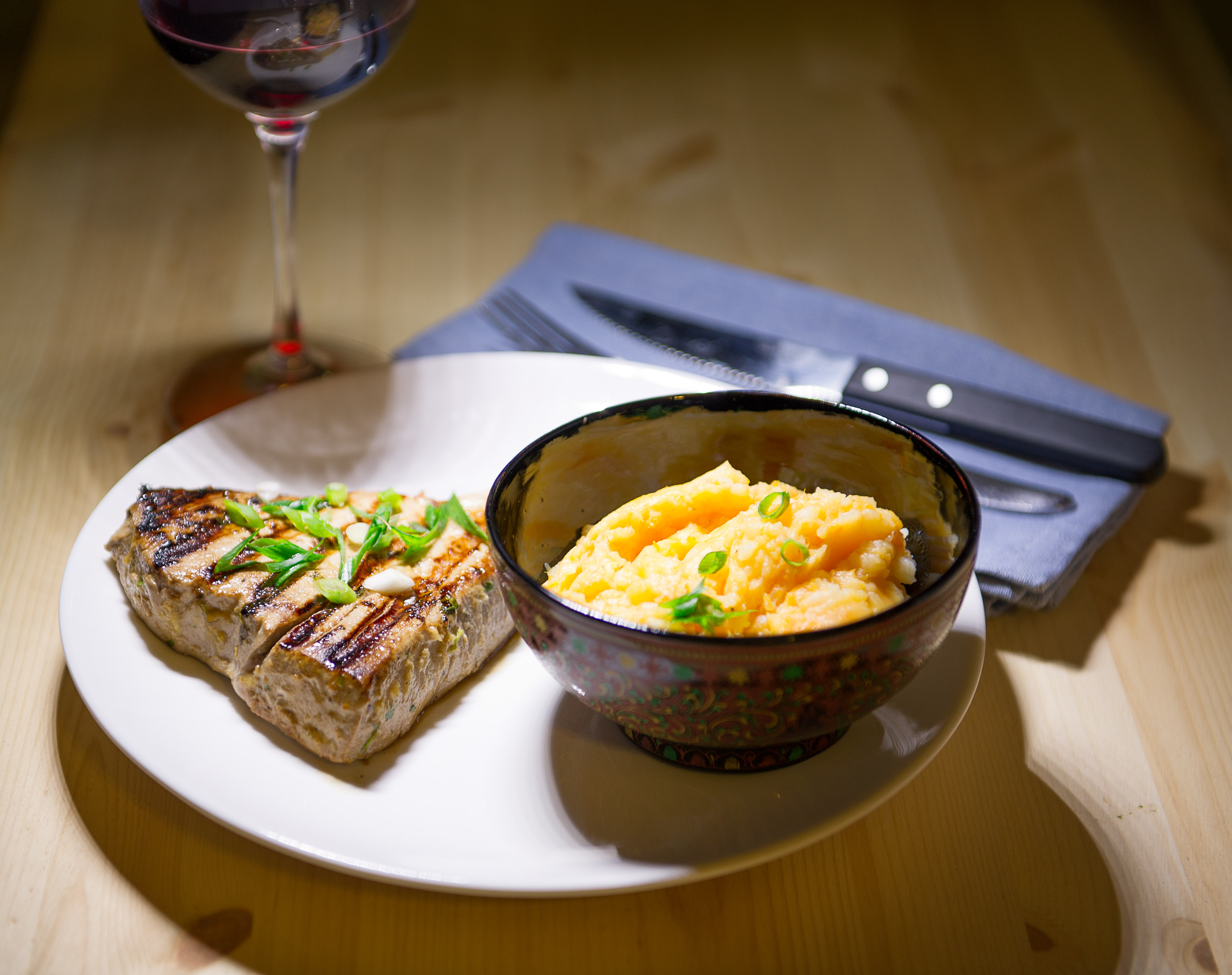 Tuno file labiau primena kokybišką mėsą nei žuvį. Net ir vynas prie jo tinka labiau raudonas nei baltas. Tunas – pati savaime sausoka žuvis, todėl ją ruošiant pravartu laikytis tam tikrų taisyklių. Viena jų – tunas turi pasimarinuoti dideliame aliejaus kiekyje, kad kepant neišdžiūtų. Tuno kepsnio kepimo laikas – vos 5 minutės, todėl padengti stalą ir pasiruošti garnyrus patartina iš anksto. Galima išvirti bulvę, saldžią bulvę, pusę svogūno, pusę saliero, ir viską pabaigoje sutrinti į košę, pagardinant pienu, sviestu arba grietinėle.